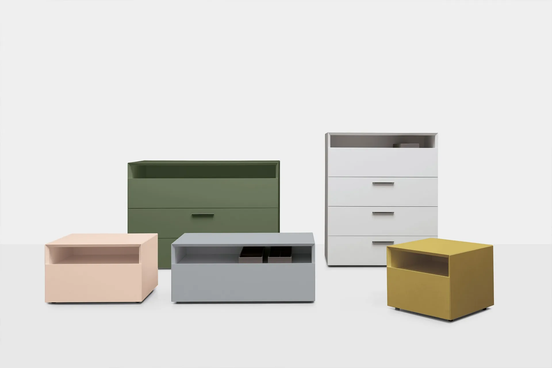 Vuoi allestire la zona notte con Comodini e cassettiere di Kristalia? Ecco qui il modello Avenue Night Gruppo Notte in laccato opaco per spazi moderni.