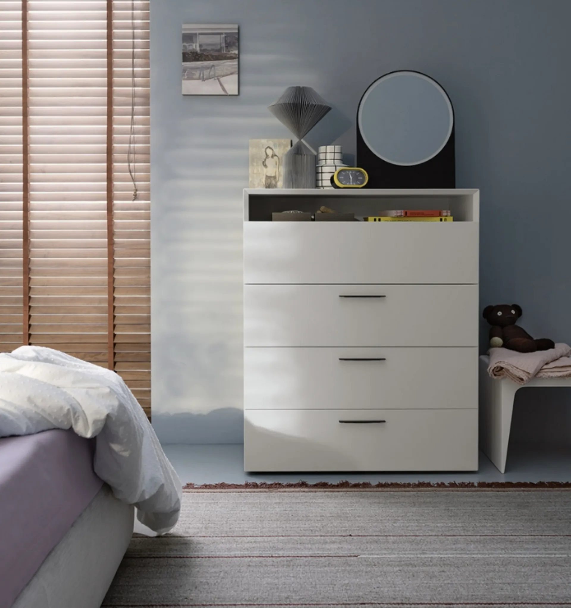 Nel nostro sito potrai trovare una ricca gamma di mobili e complementi per la camera da letto, tra cui anche il modello in foto. Questo tipo di contenitore è prodotto in laccato opaco e saprà garantirti resistenza, praticità e un'ottima resa estetica. Eleganti superfici di appoggio, strutture solide, superficie per contenere: nei Comodini moderni che esponiamo questi vantaggi sono assicurati. Ottieni informazioni sulla nostra linea di Comodini, comò e settimini moderni del marchio Kristalia e ottimizza la tua zona notte con il gruppo notte che hai sempre voluto.